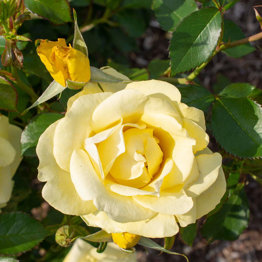 Gilded Sun Rose is a reblooming deciduous shrub with an upright mounding habit and glossy dark green foliage. The lightly fragrant clusters of golden to lemon yellow flowers that bloom in flushes from late spring until frost. Best grown in full sun and rich, moist, slightly acidic well-drained soils. Has excellent disease resistance.