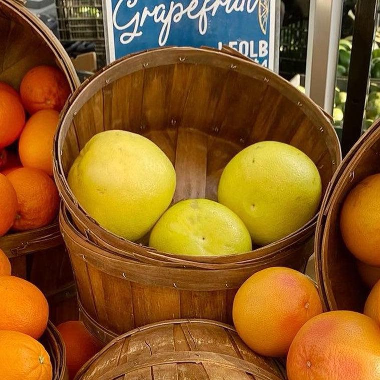 Oro Blanco Grapefruit is a white seedless variety of the evergreen fruiting shrub with large fruits that ripens in in spring. The huge fragrant winter flowers give way to large fruit that ripen to yellow with supple yellow to white flesh that has a delicate sweet taste without the traditional grapefruit bitterness. Grows best in full sun and moist well-drained acidic soils. Oro Blanco is self-fruiting.